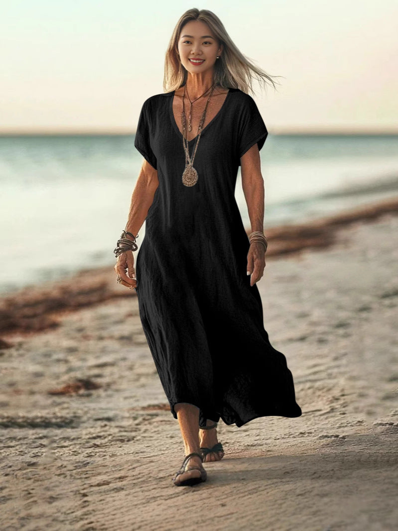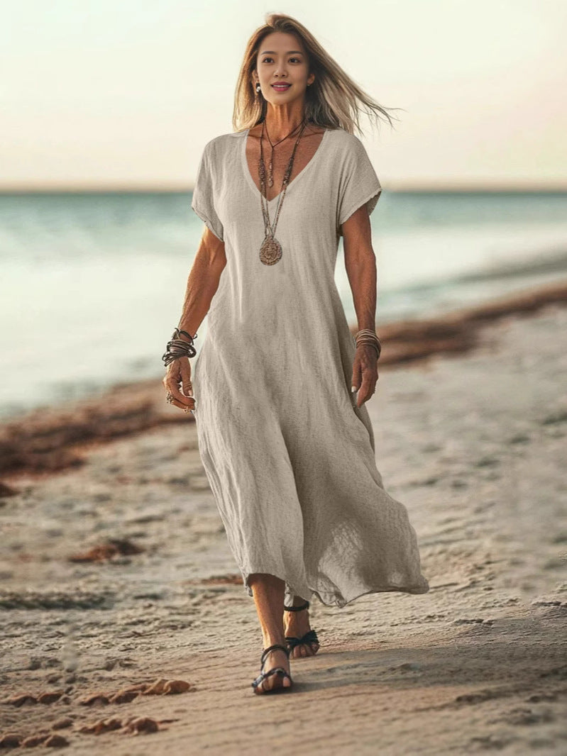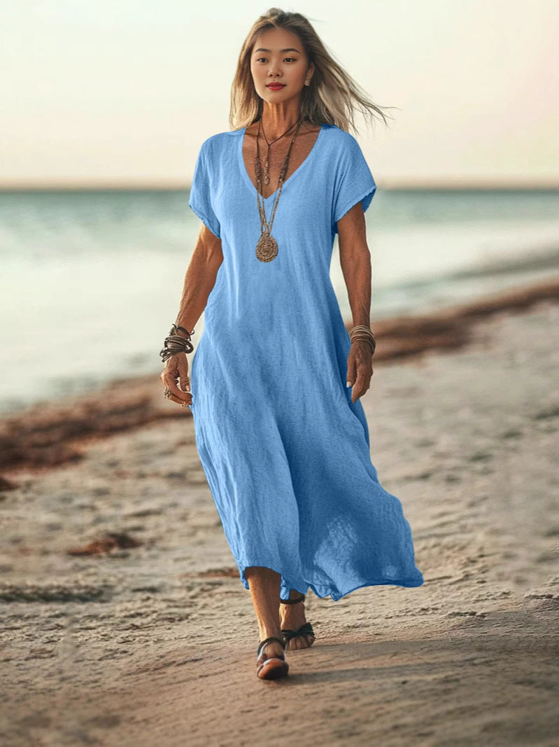 2025 Summer V Neck Short Sleeve Casual Lightweight Boho Dress