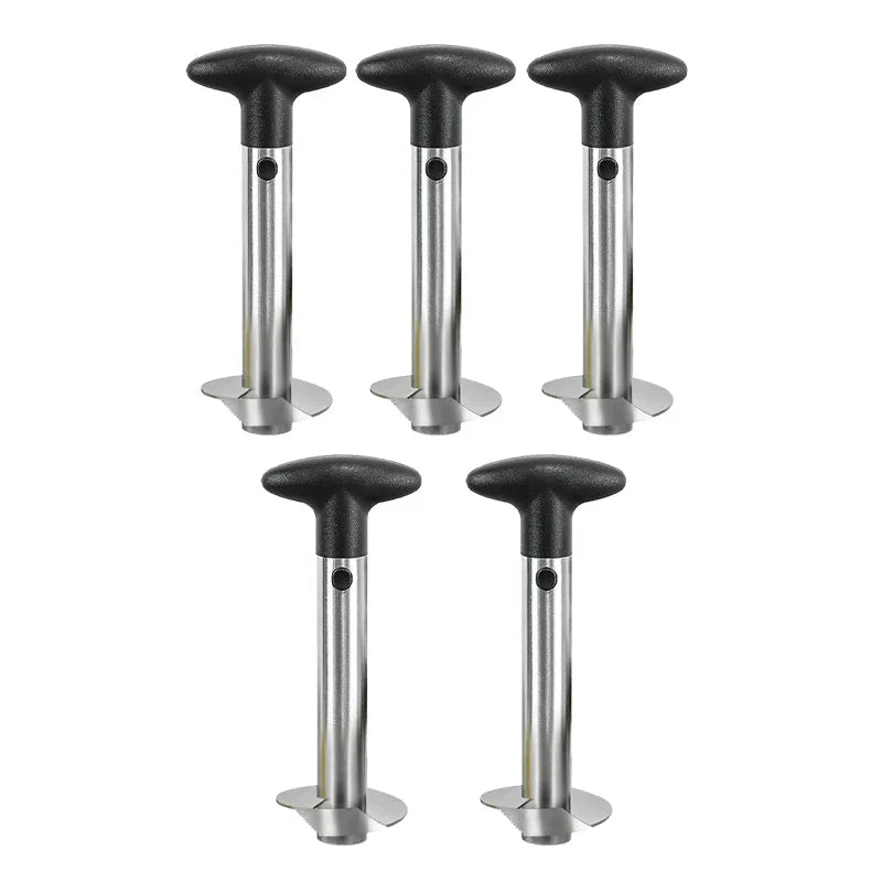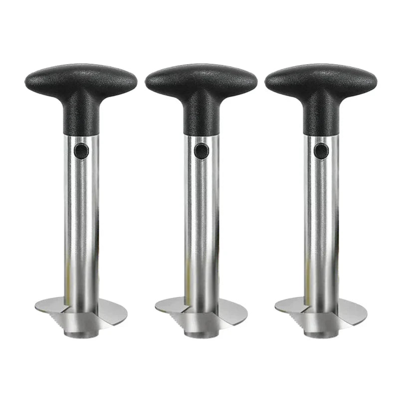 Bekvämt ergonomiskt handtag: Utrustad med ett halkfritt, lättgreppbart handtag som är avtagbart, vilket gör att du enkelt kan dra bort ananasskivor och flytta genom ananaskärnan med minimal ansträngning. Dess hållbara och robusta design håller även under konstant användning i många år.