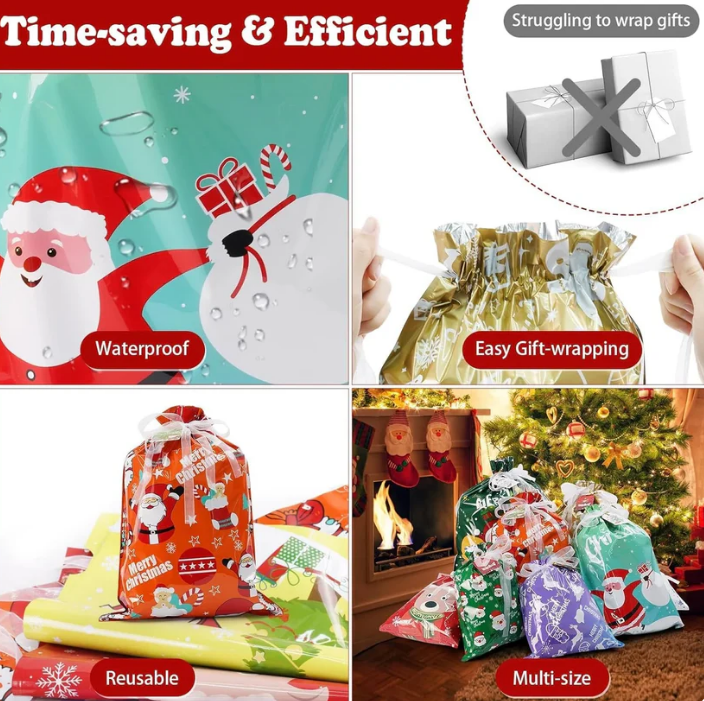 No messing with wrapping paper and tape and scissors, no worrying about trying to do a neat job on something that's just going to get torn up and thrown away. Our Christmas gift bags come with pretty ribbons which can help you store things quickly, provide a beautiful finished look for your gifts.