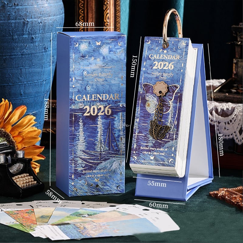 Transform your daily routine with this beautifully designed 2026 flip calendar. Inspired by vintage European oil paintings, it adds a timeless touch of elegance to your desk or workspace. Each page is a work of art — paired with a charming butterfly pendant for an extra hint of sophistication.