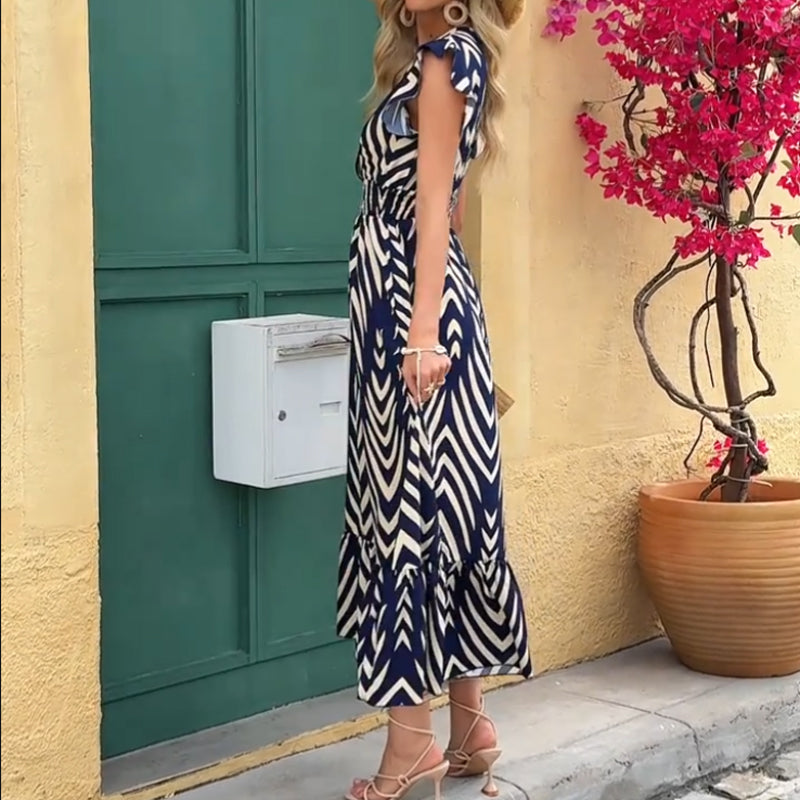 Package Includes: 1* Women's Elegant Printed V-Neck Dresses