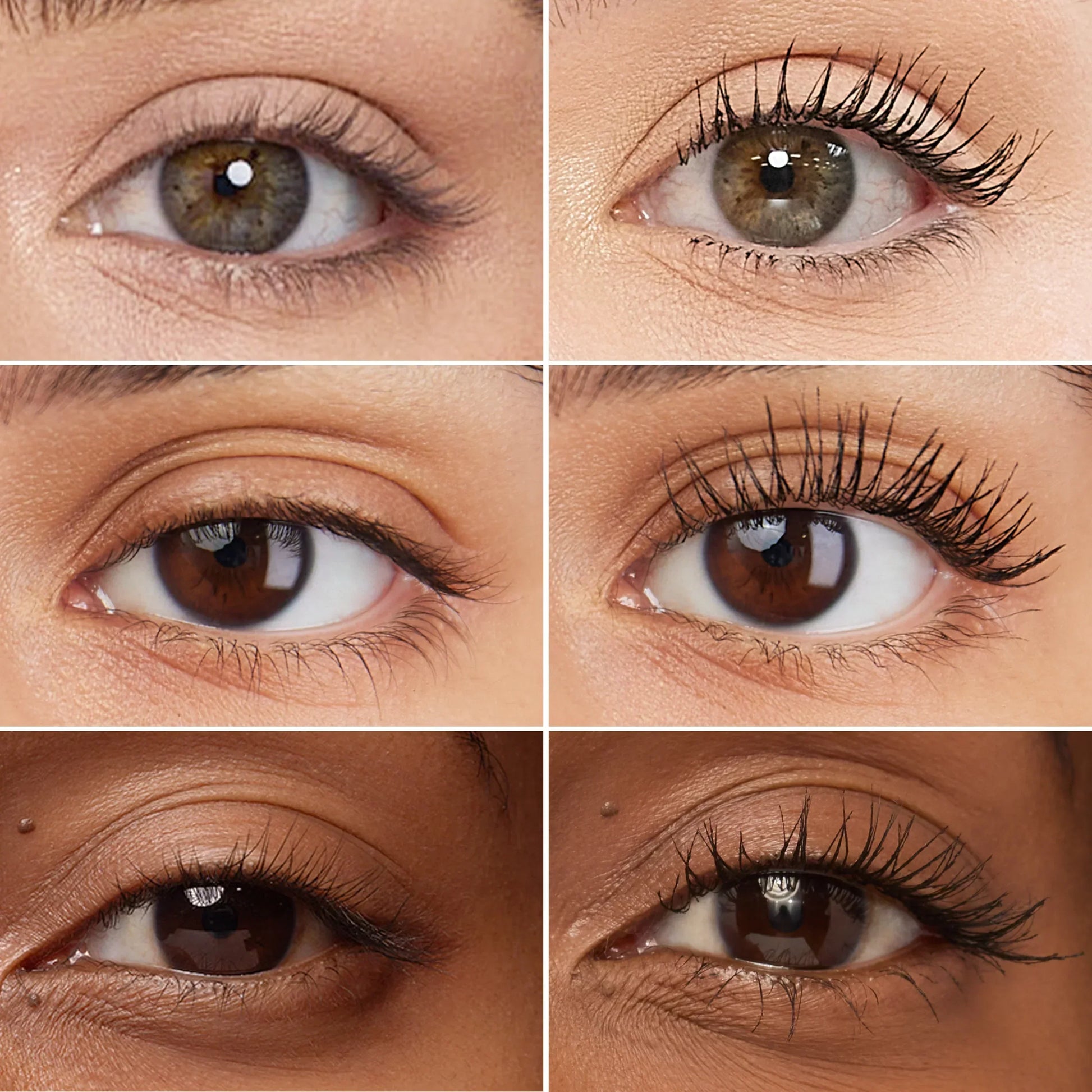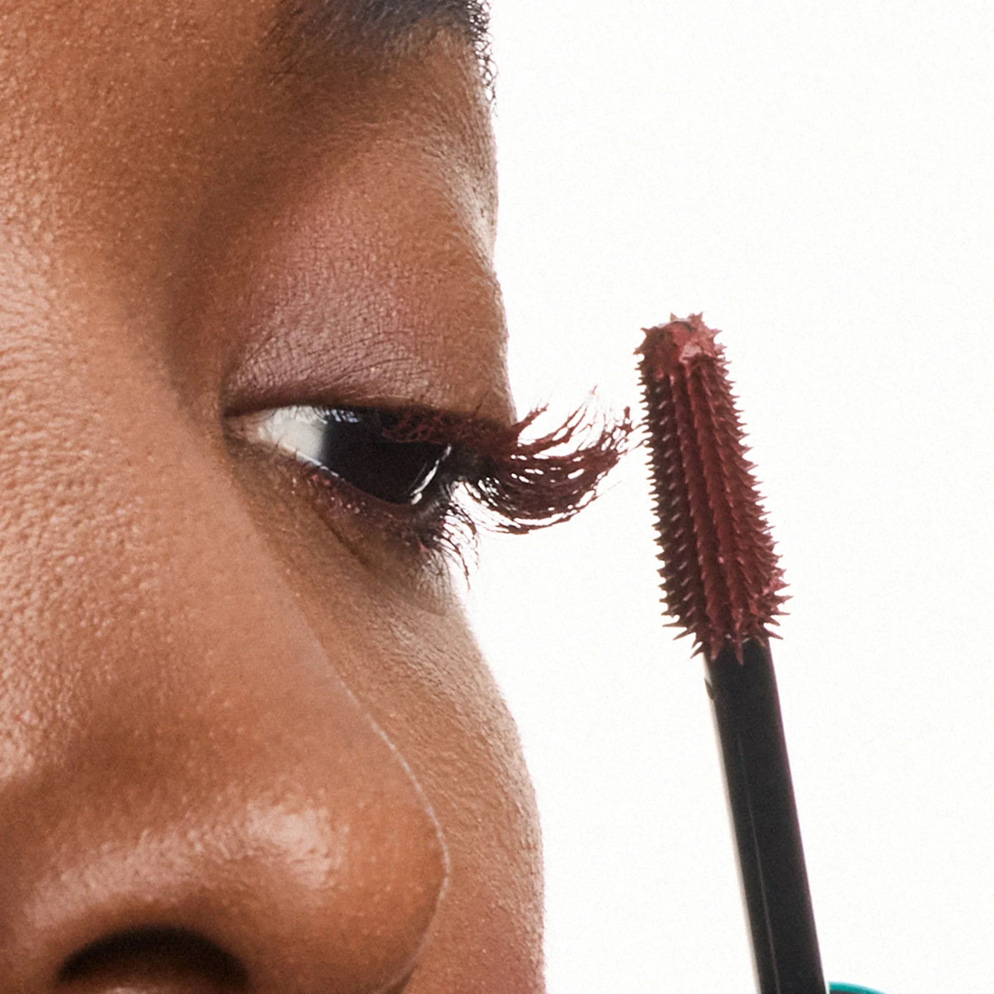 Application: Beginning at the base of your lashes, gently guide the wand from root to tip to define + lengthen every lash. Layer additional coats while lashes are still wet to seal in all day flake-free wear!