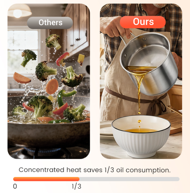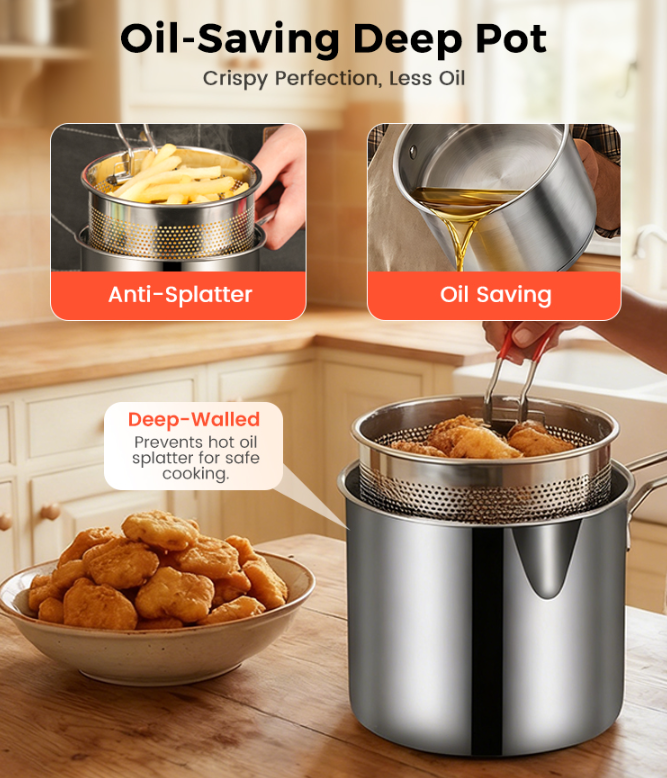 ★【Deeper Pot Body】: Fuel-saving splash design ensures the safety of fried food. Compared with traditional deep-frying pots, our pot can help you save oil. To fry the same food, our pan requires only 2/3 of the oil required by a traditional deep fryer.