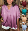 Elevate your style effortlessly with this elegant satin blouse featuring a flattering V-neckline and short sleeves. It will be a new favorite in your closet!