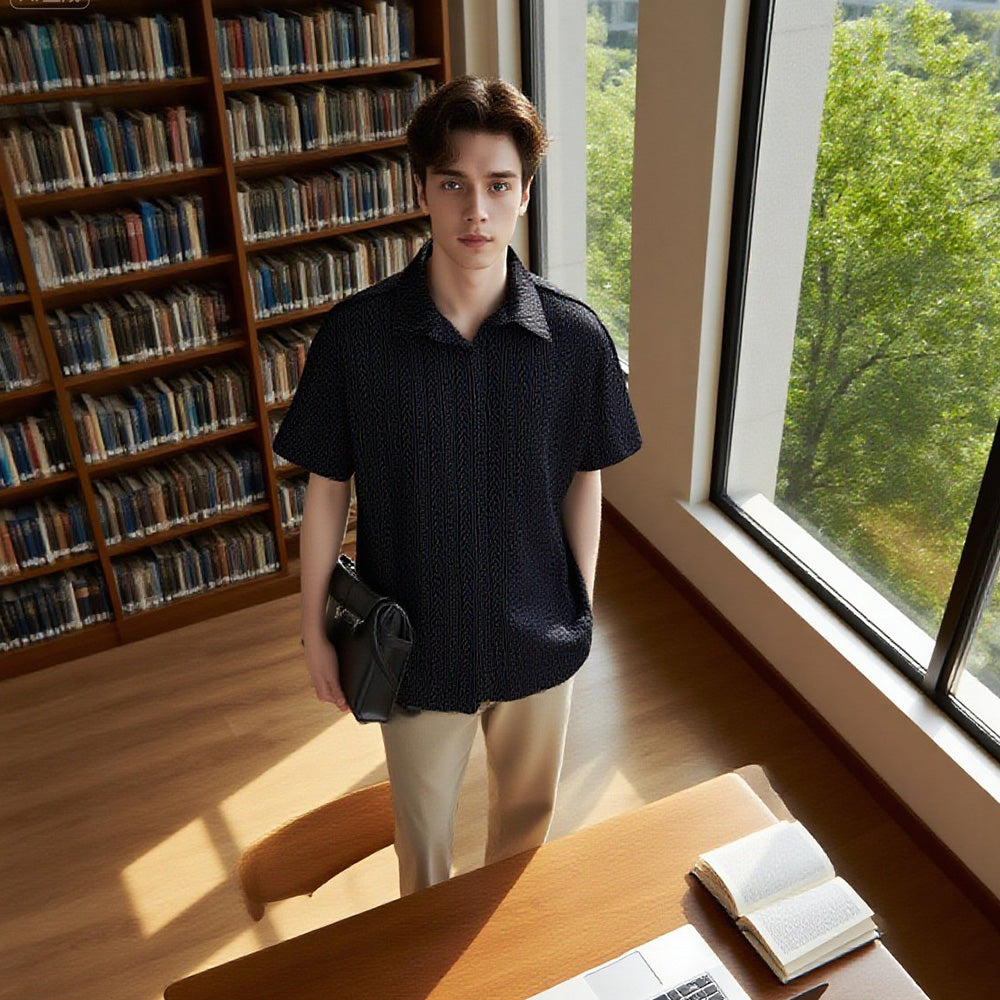 CLASSIC LAPEL COLLAR FOR A TOUCH OF FORMALITY: The shirt incorporates a classic lapel collar, blending casual comfort with a hint of formality. This design element elevates the shirt's versatility, allowing it to transition seamlessly from relaxed outings to more polished settings.