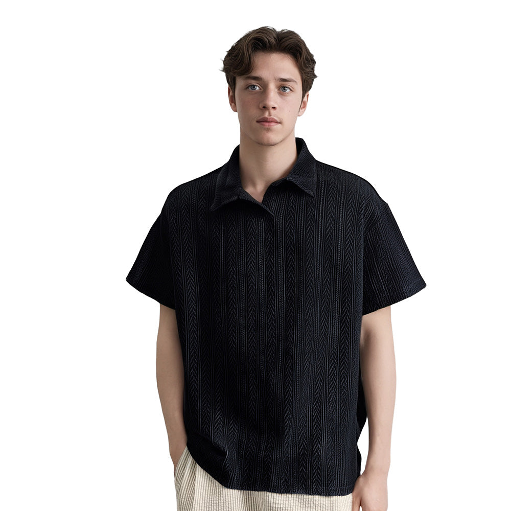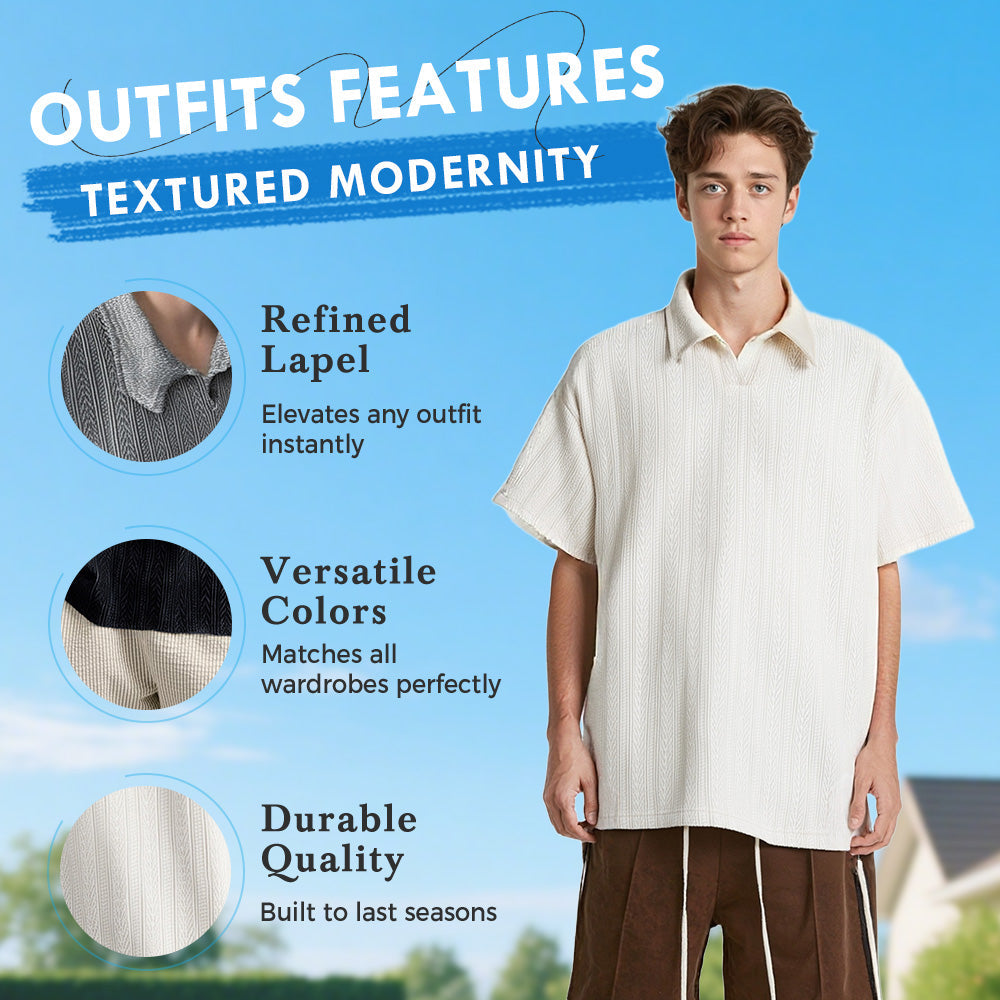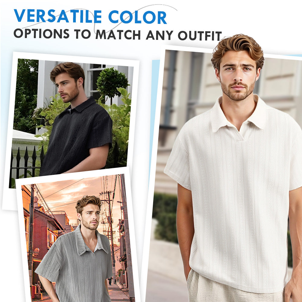 STYLISH TEXTURED FABRIC FOR A MODERN LOOK: The Lapel Short Sleeve features a premium soft fabric with a subtle vertical textured pattern. This unique texture adds depth and visual interest to the shirt, creating a sophisticated appearance that stands out from plain designs.