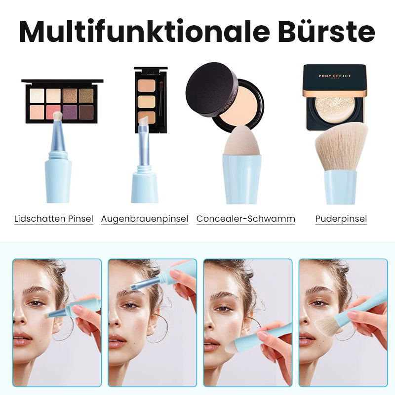 The 4-in-1 make-up brush is a versatile make-up tool that can be used for multiple purposes. Typically, it has four different brush heads that can be used to apply different types of make-up products.