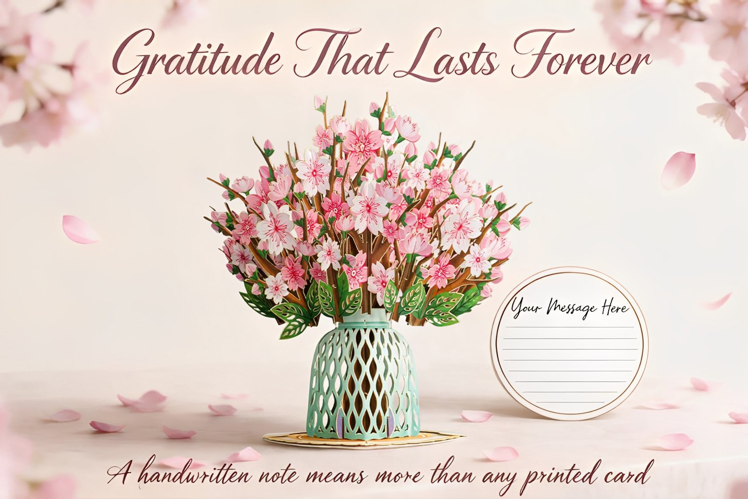 A: The 3D Cherry Blossom Flower Bouquet Pop-Up Card is a stunning token of affection and appreciation, making it an ideal gift for birthdays, milestone celebrations, or even a heartfelt, just-because gesture. The exquisitely crafted cherry blossom motifs symbolize beauty and new beginnings, rendering this card perfect for commemorating lifeās special moments. Beyond its use as a greeting card, it doubles as a timeless keepsake that recipients can treasure forever.