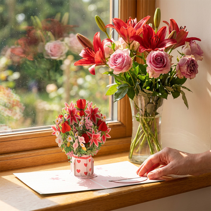 Visual Feast: 3D pop-up bouquet instantly captures their heart.