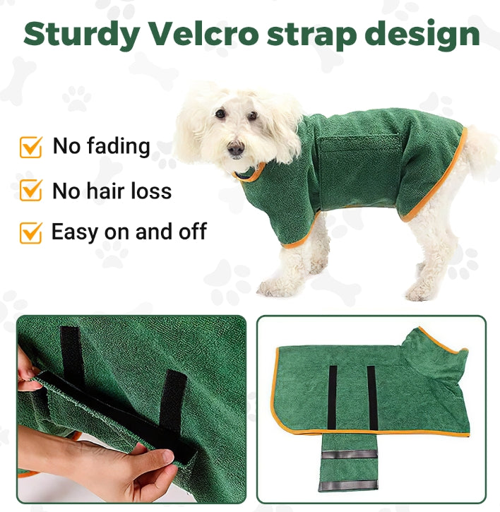 - The Super Absorbent Pet Bathrobe has super absorbency and can be used as a towel to dry your pet's fur or as a bathrobe/coat/nightshirt for warmth and comfort.