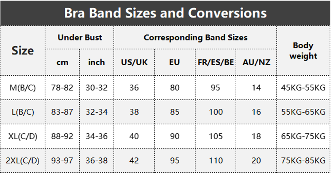 Sizes: M(BC), L(BC), XL(CD), 2XL(CD)