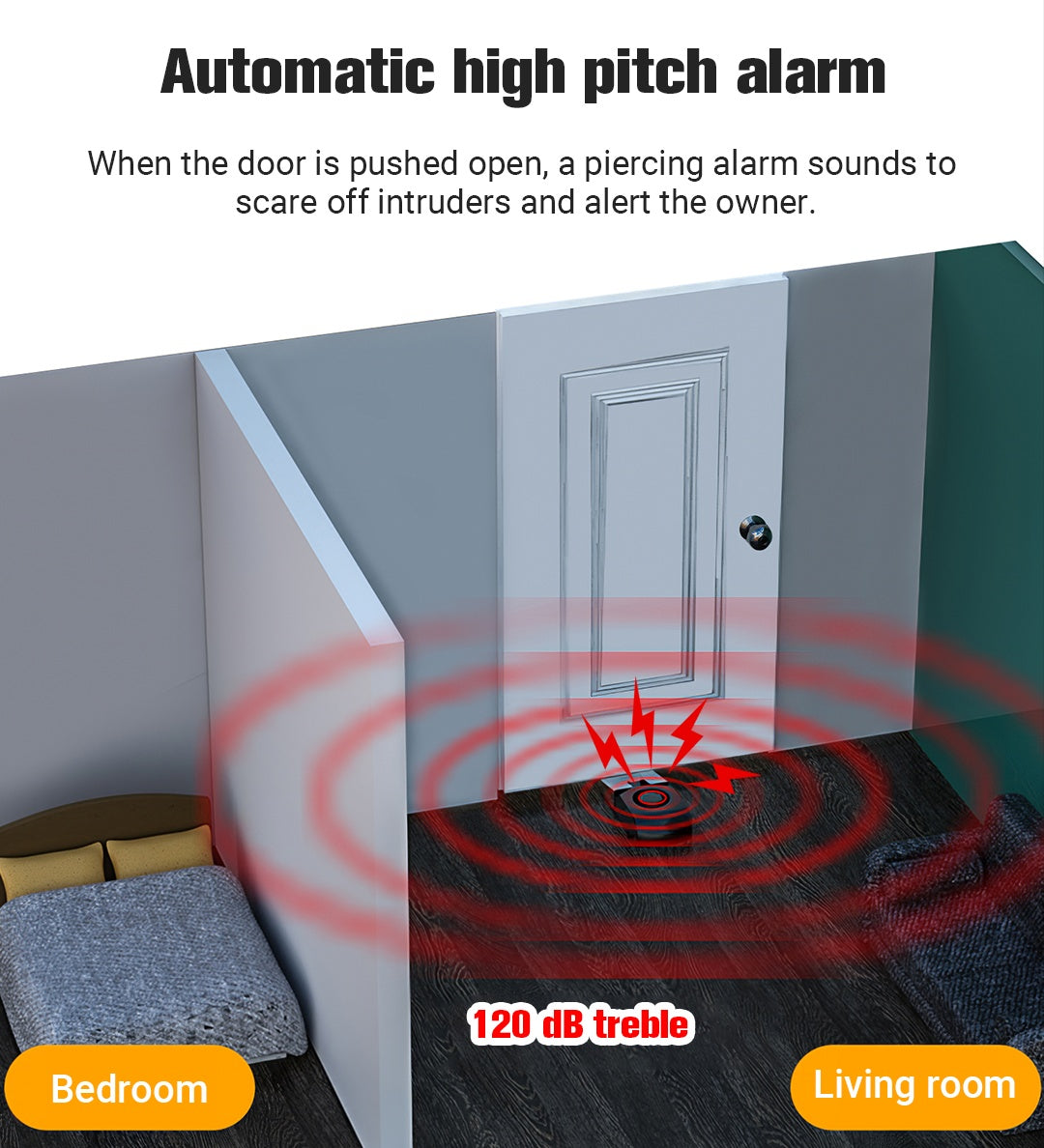 Powerful sound - Opening the door will activate the alarm to alert you, as it has a very distinctive sound that will help wake up and alert everyone in your home.