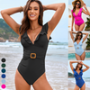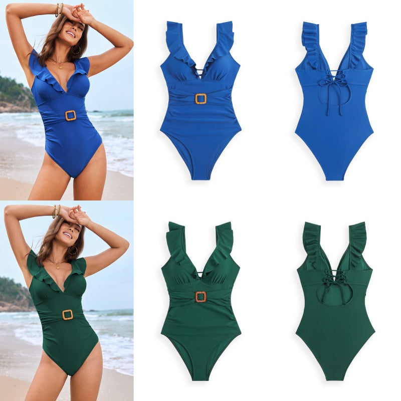Sexy Ruffled Deep V-Neck One-Piece Swimsuit