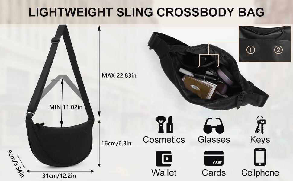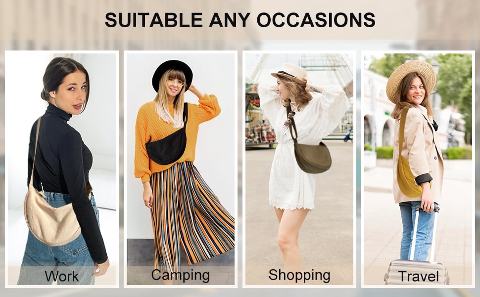 - ✅【Unisex Crescent Bag Suitable for Any Occasion】This personal hobos crossbody bag is suitable for coffee in the morning or yoga in the studio in the city center.It can be used as a cross bag, shoulder bag, waist bag, or fanny pack, suitable for various dressing styles, such as workwear style, ivy style, casual style, sports style, biker style, etc.