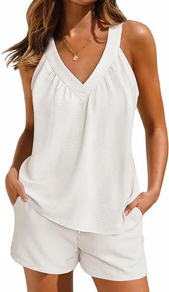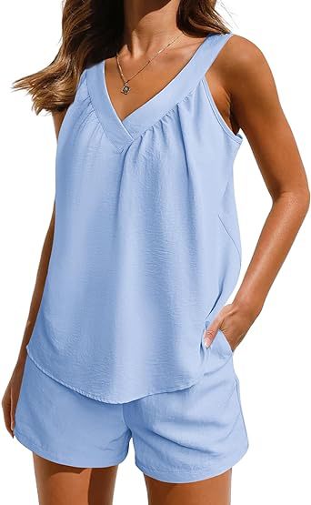 Package Includes:1*Women's Sleeveless Top Pocket Shorts Set