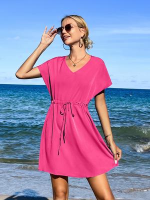 Summer Printed Drawstring V-Neck Loose Beach Dresses