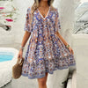 🔥Hot Sale 50%OFF👗Women’s Flower Print V Neck Short Sleeve Mini Dress