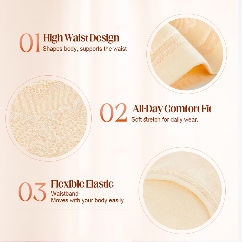 FULL COVERAGE SUPPORT – Confidence-boosting fit for daily wear. Designed for fuller figures, these high waisted panties offer excellent tummy support and coverage. The extended rise helps smooth your midsection while staying securely in place—making them ideal for both comfort and shaping throughout the day.