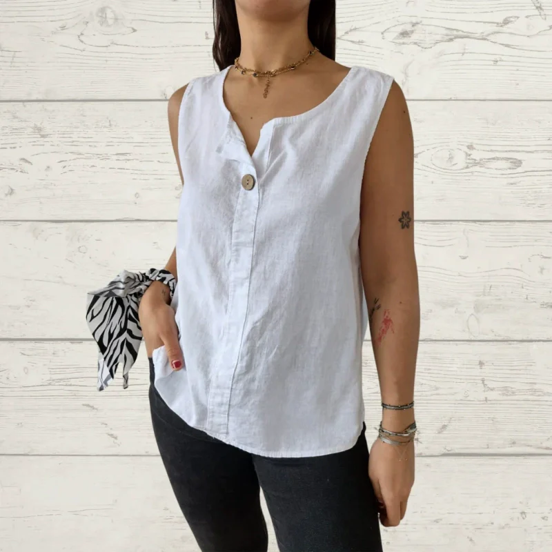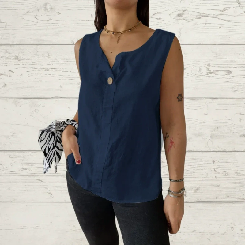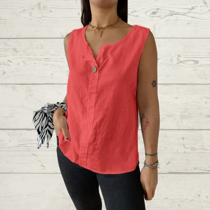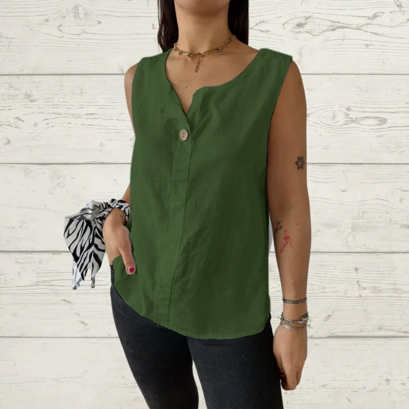 Women's Sleeveless Casual Loose Button Top