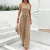 Package Includes: 1× Women's Solid Waist Tie Jumpsuit