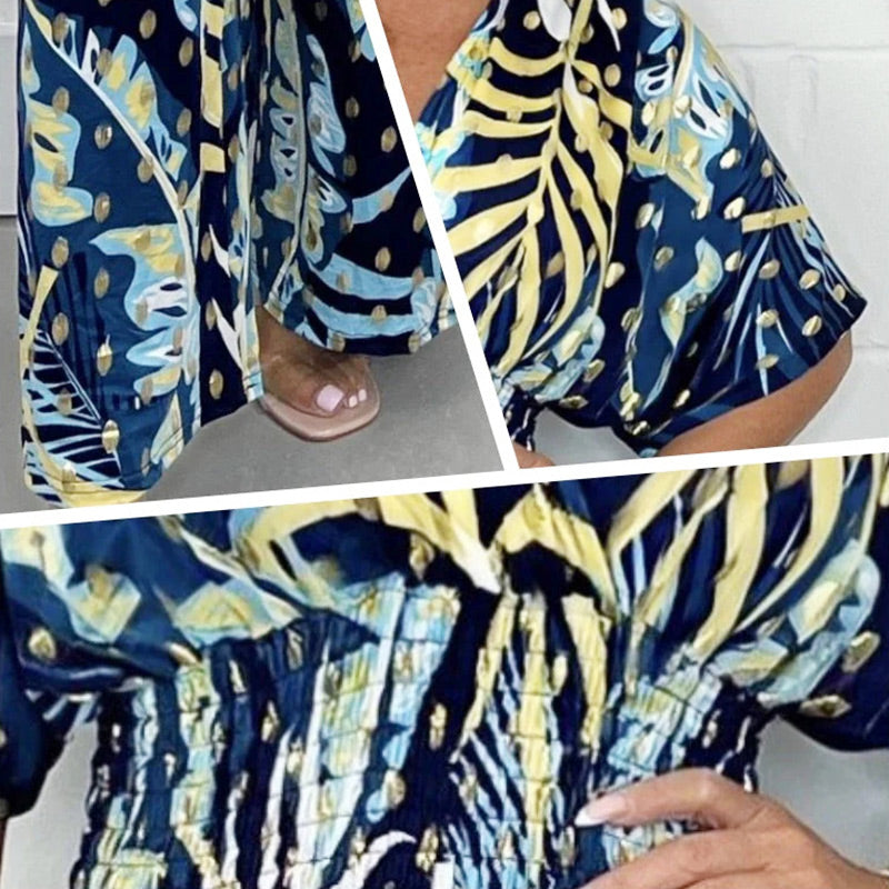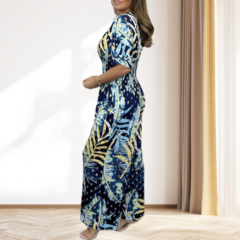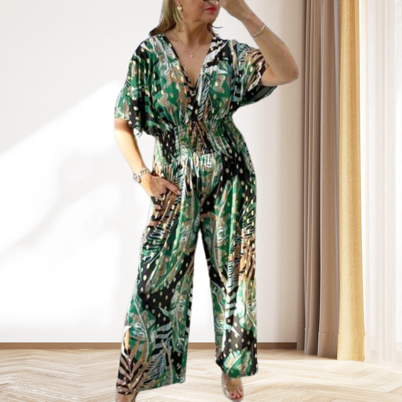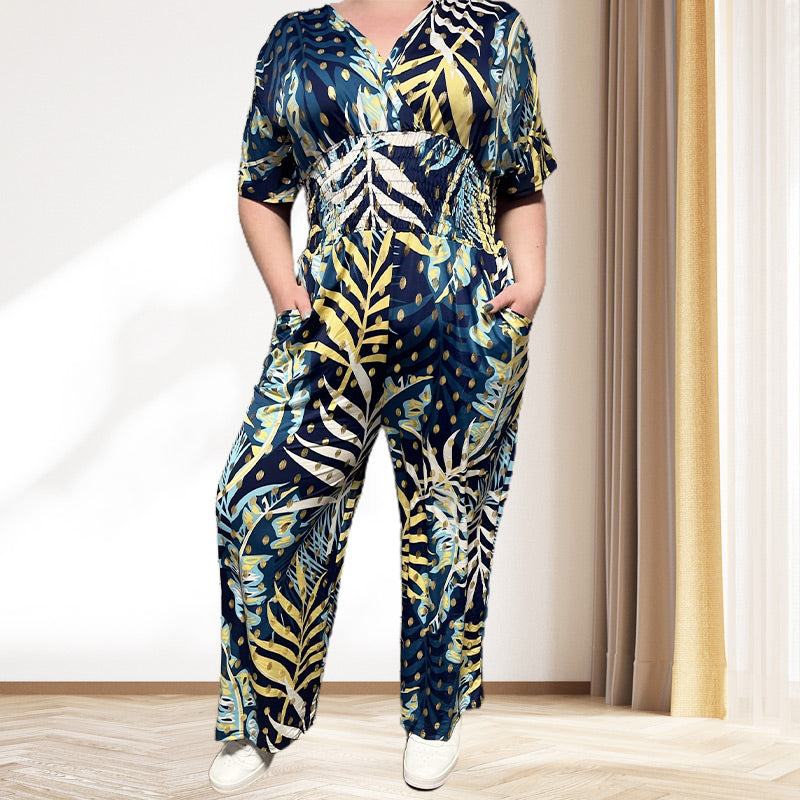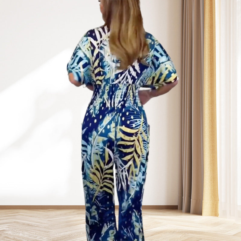 Women's Summer Print Wide Leg Elastic Waist Jumpsuit
