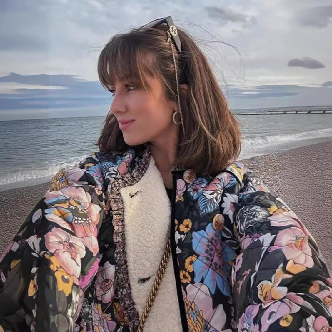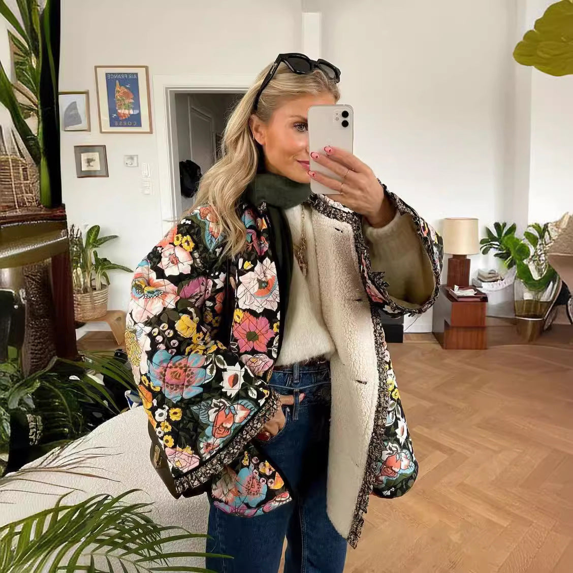 Women's Winter Vinatge Warm Floral Printed Loose Coat