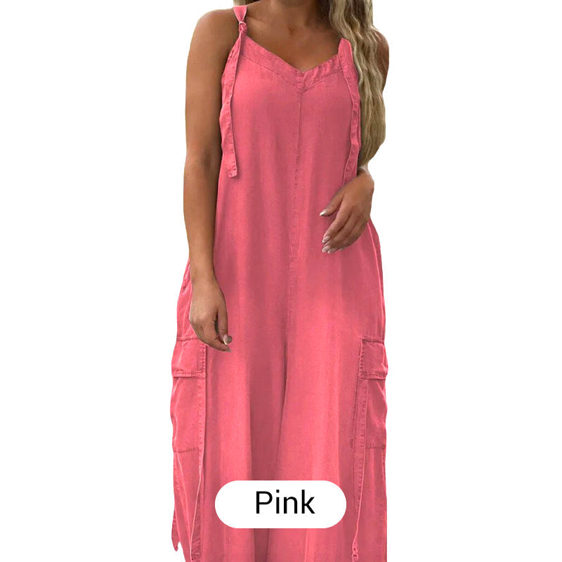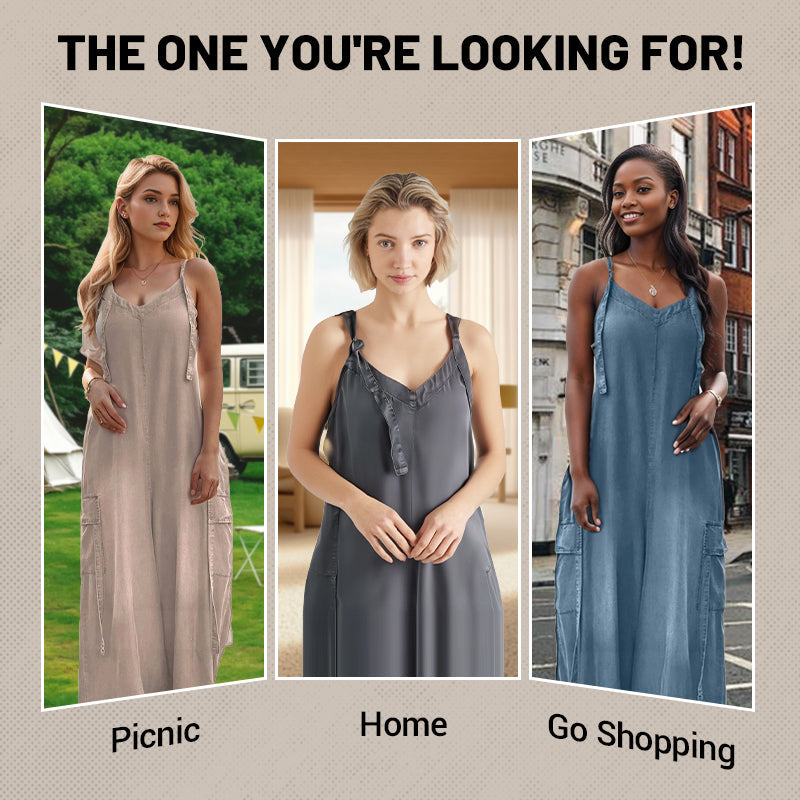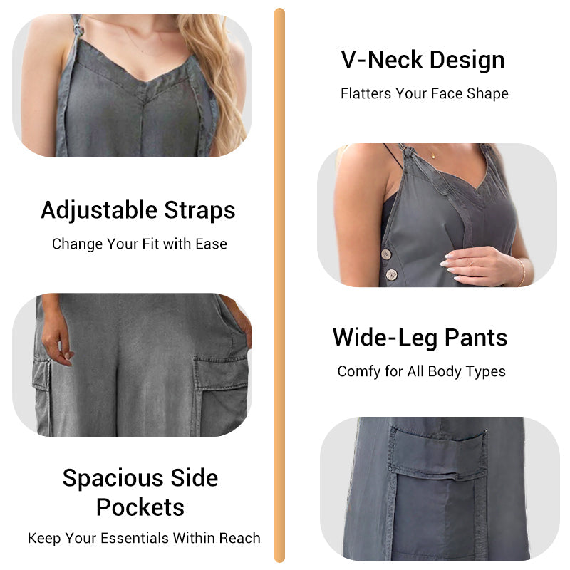 🎉Limited Sale 50% OFF💕Women's Loose Adjustable Straps Wide-Leg Jumpsuit with Pockets
